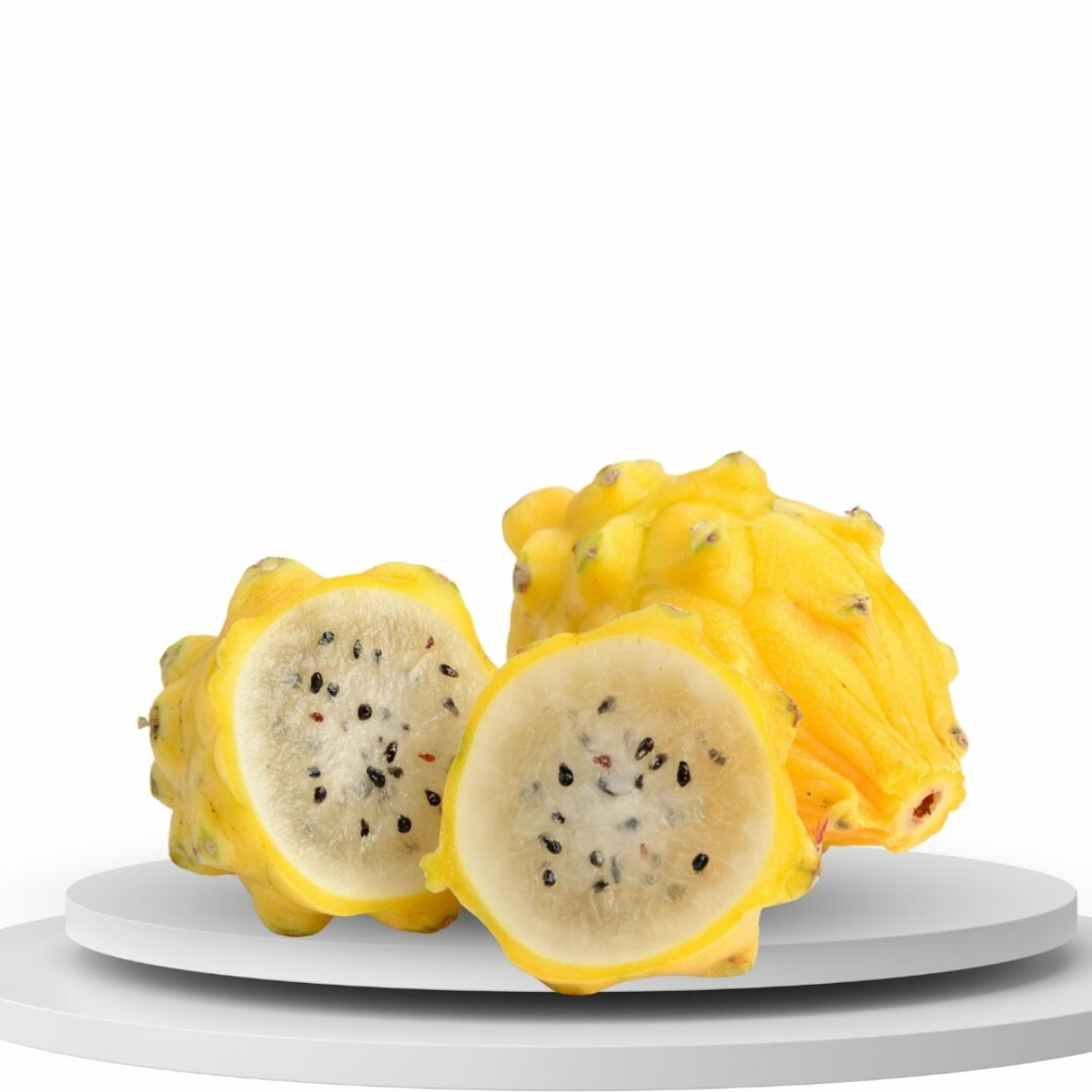 Sarı dış kabuklu, Selenicereus cinsinden bilinen bir Ejder Meyvesi veya Pitaya çeşididir.  Hasat zamanı da diğer çeşitlerle benzerlik gösterir.  Meyve genellikle 350 ila 500 gram arasında değişen ortalama bir ağırlığa sahiptir. Bitki, gövdesi boyunca ortanında üzerinde büyük dikenler bulunan yeşil üç taraflı bir büyümeye sahiptir. Dikenleri çok belirgin ve çok keskindir.